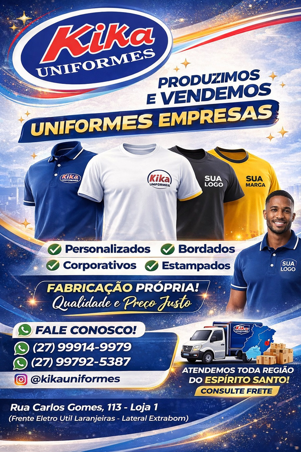 Rua Carlos Gomes 113. Parque Residencial Laranjeiras - Serra/ ESKIKA UNIFORMES!! O MELHOR PARA SUA EMPRESA FAÇA SEU ORÇAMENTO Fornecedor de uniformes 🧵 Confecções sob medida para 🩺 Enfermarias | 👨💼 Empresas 👩🎓 Escolas |🤵 Eventos